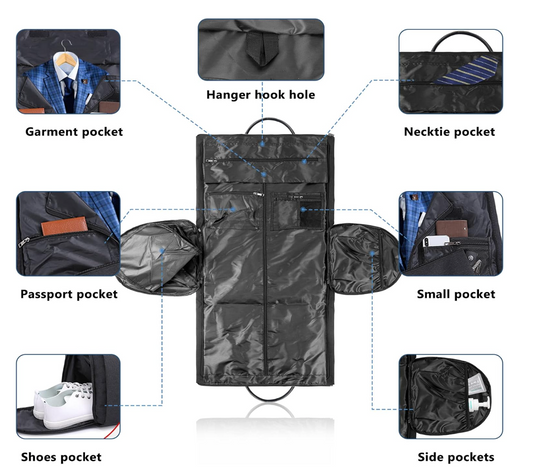 Porta trajes que se convierte en bolsa