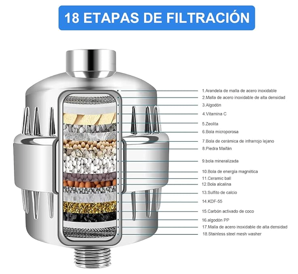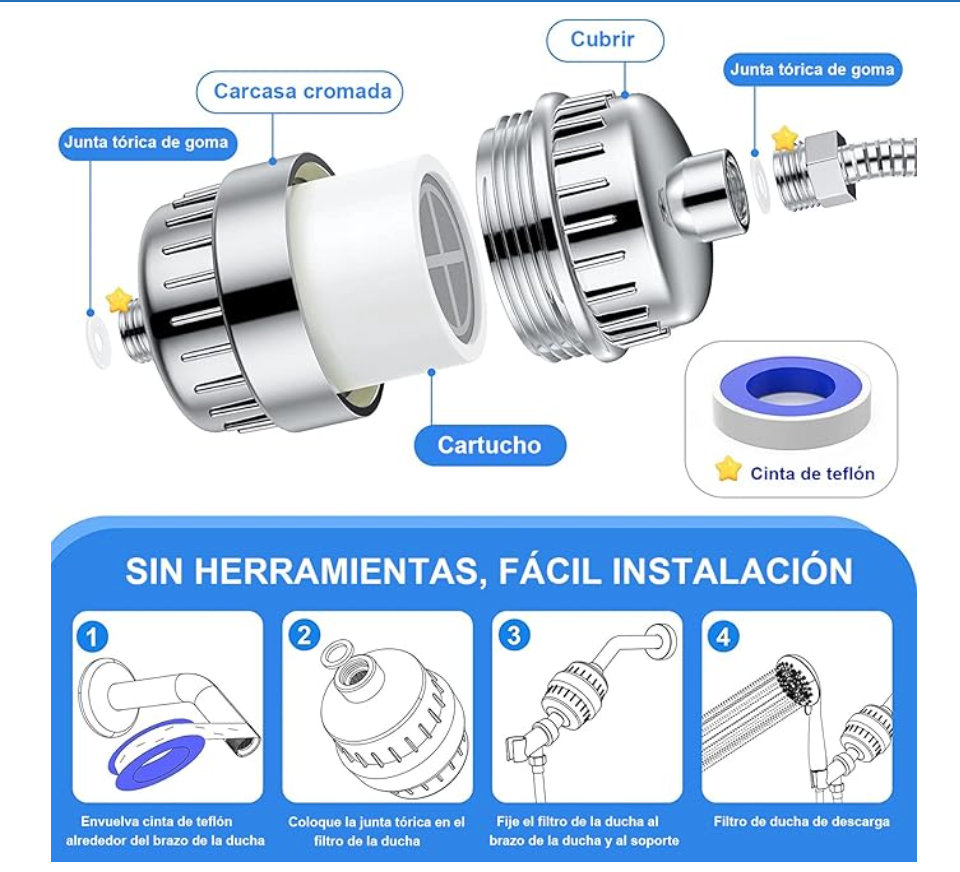 Ayuda a mejorar la calidad del agua, cuidando tu piel y tu pelo, super fácil de instalar