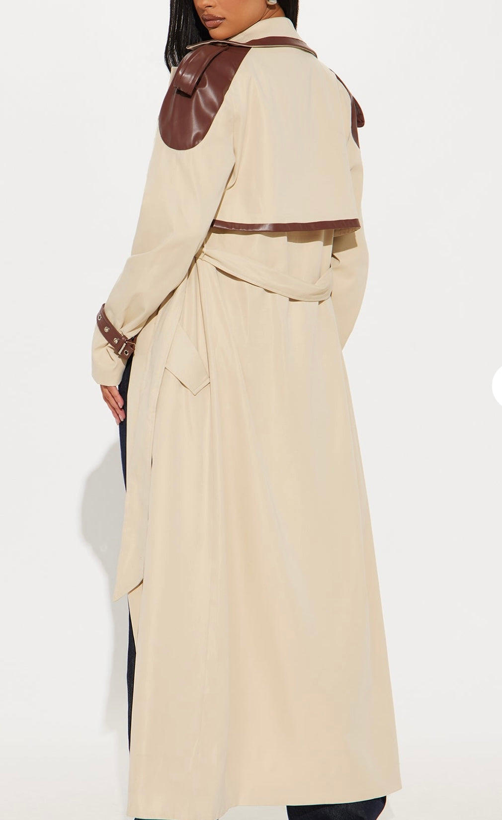 Gabardina beige con detalles café estilo piel